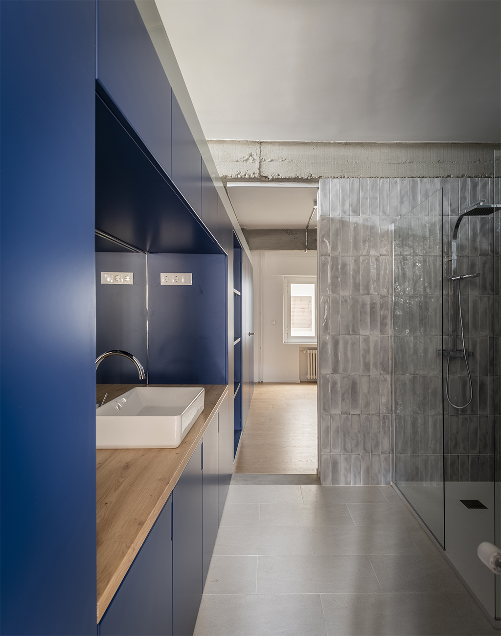 - Para refugiarse, un vestidor aporta intimidad frente a la circulación del dormitorio, sin nexos entre los espacios húmedos que lo anteceden y lo suceden.
