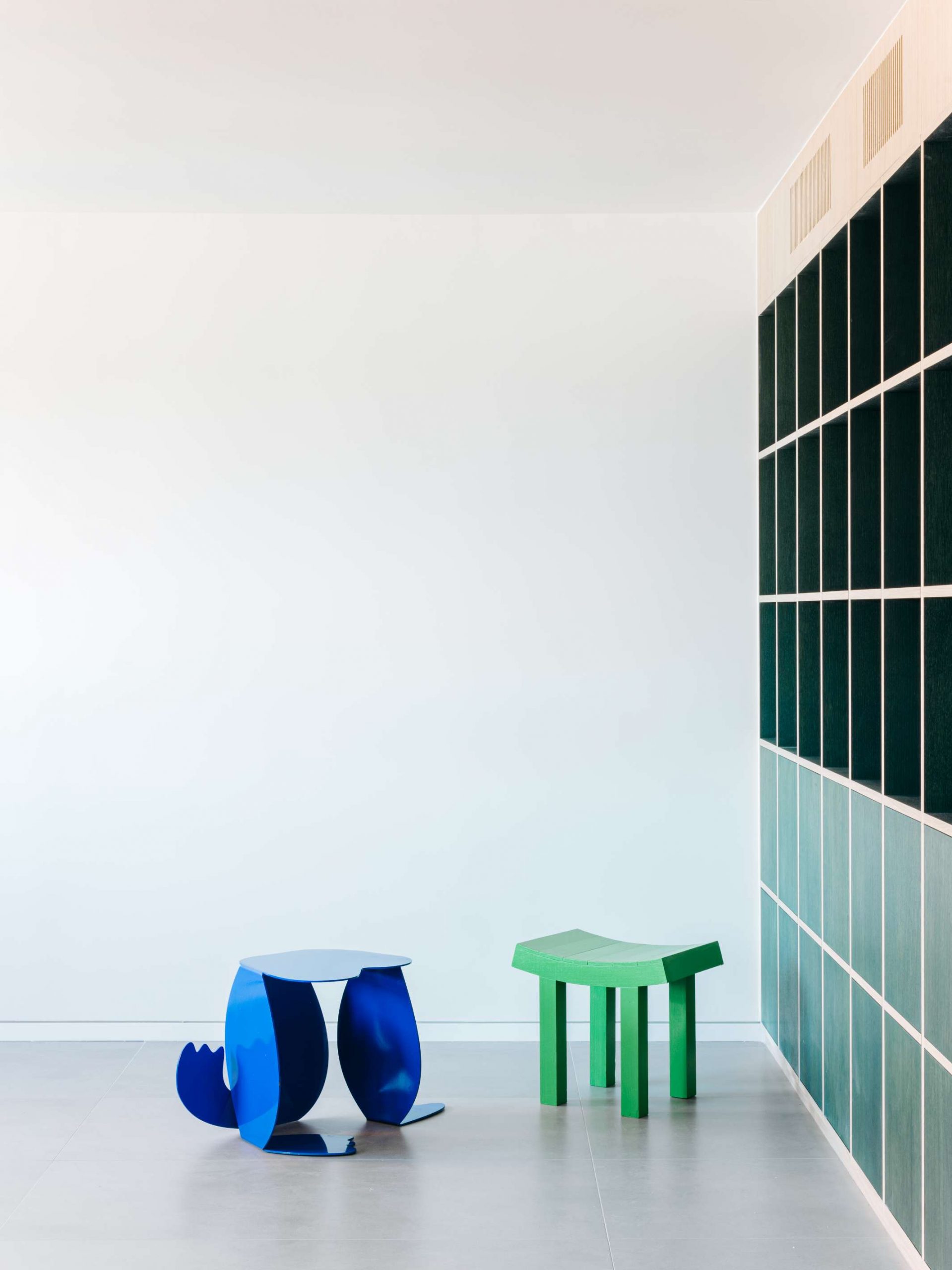 To emphasize this set of solids and voids, the piece is materialized with a dark-toned interior, while the edges and doors of its main plane retain their natural finish.