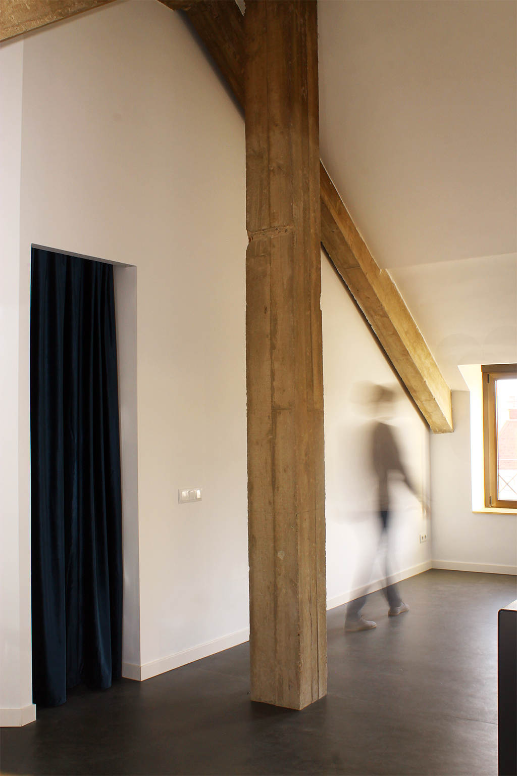 Las estancias domésticas, articuladas en torno a un espacio de distribución central, se componen como un conjunto de espacios perimetrales de carácter semiprivado que buscan su encaje hacia las fachadas. El suelo, concebido como un elemento natural de carácter homogéneo, otorga continuidad material a la vivienda, cediendo el protagonismo a las luces y escenas que van apareciendo a ambos lados del recorrido central.