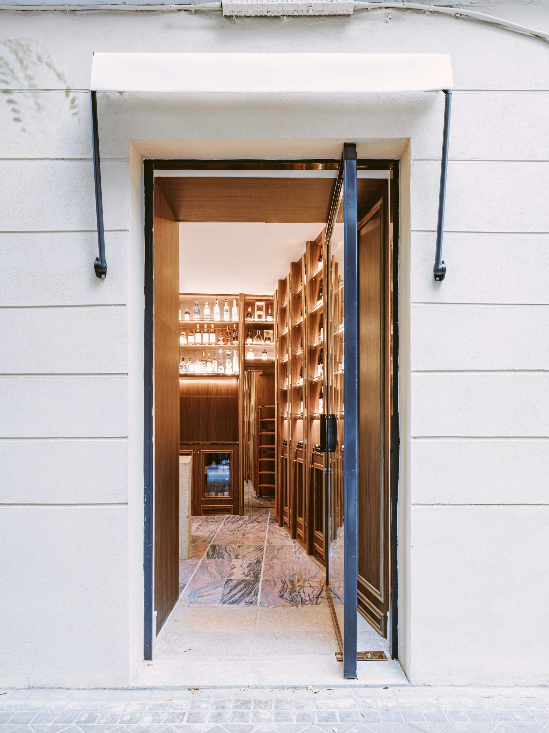 La gran puerta pivotante conecta interior y exterior, fusionando la calle con la tienda y convirtiéndose en un elemento de llamada gracias a su configuración de apertura.