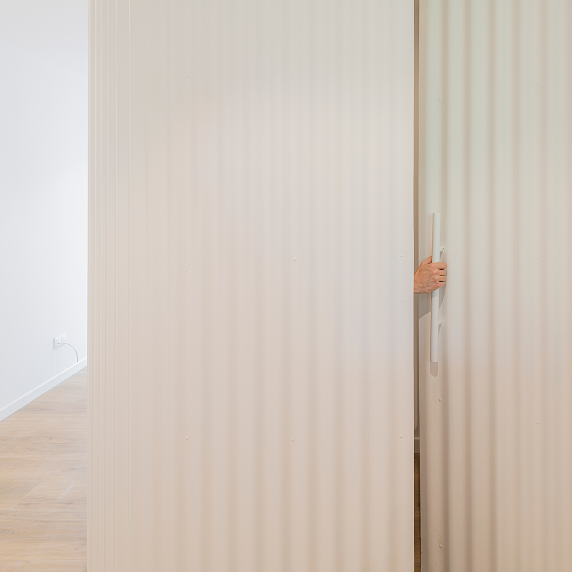 “Geometric Investigations I” designs a programmatic element linked to the entrance space of the house. This curved piece serves as an axis between the kitchen and the dining-living area, enhancing spatial fluidity and providing privacy to the entrance. A low piece of kitchen furniture connects the hall and the kitchen in order to expand and link spaces.