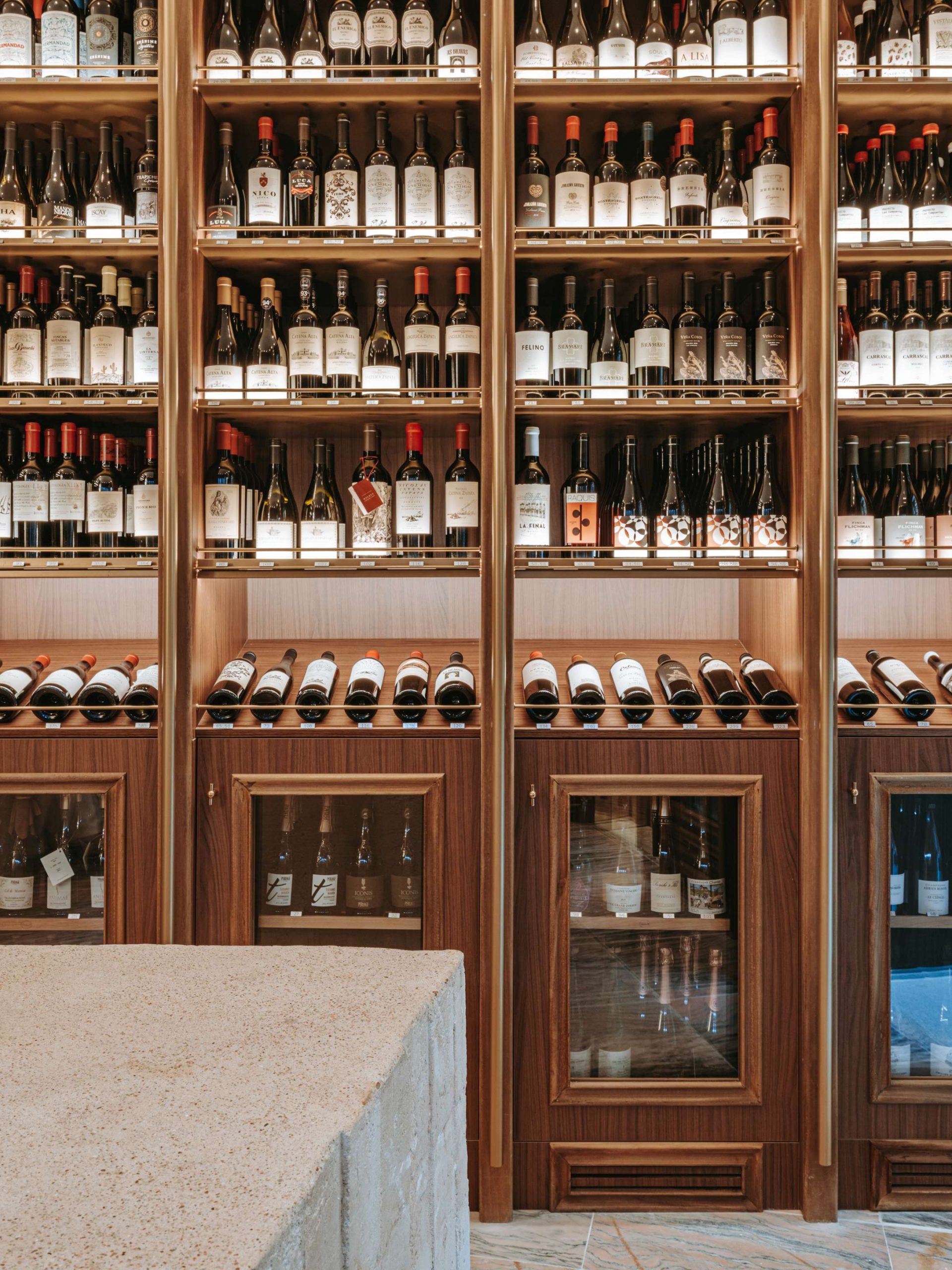 La tienda gourmet El Enemigo se organiza a partir de un perímetro equipado en torno a una pieza central de mostrador, ejecutada in situ en hormigón.