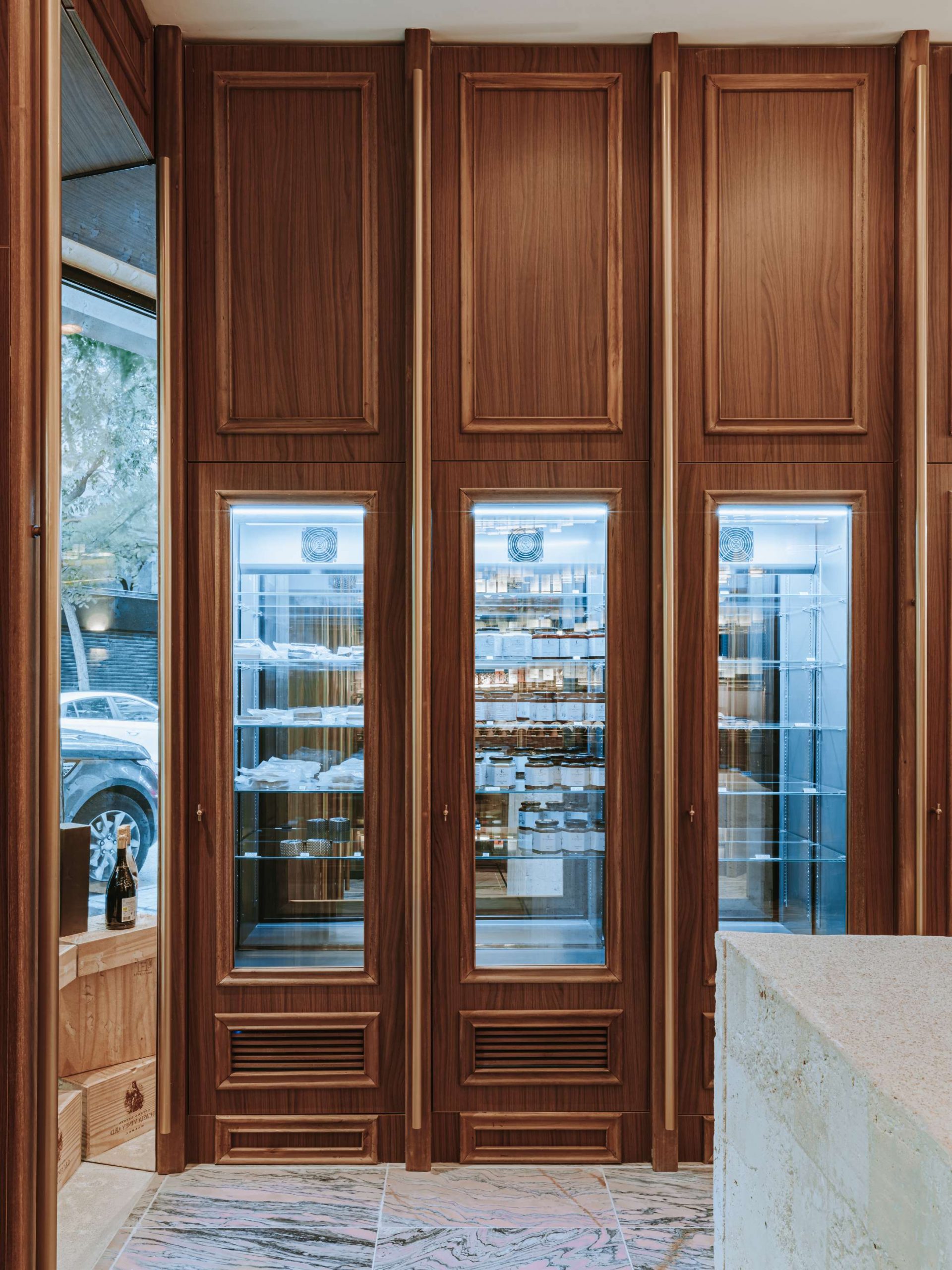 La tienda gourmet El Enemigo envuelve al visitante en una atmósfera de inspiración clásica, marcada por elementos de fuerte contraste que otorgan carácter al conjunto.